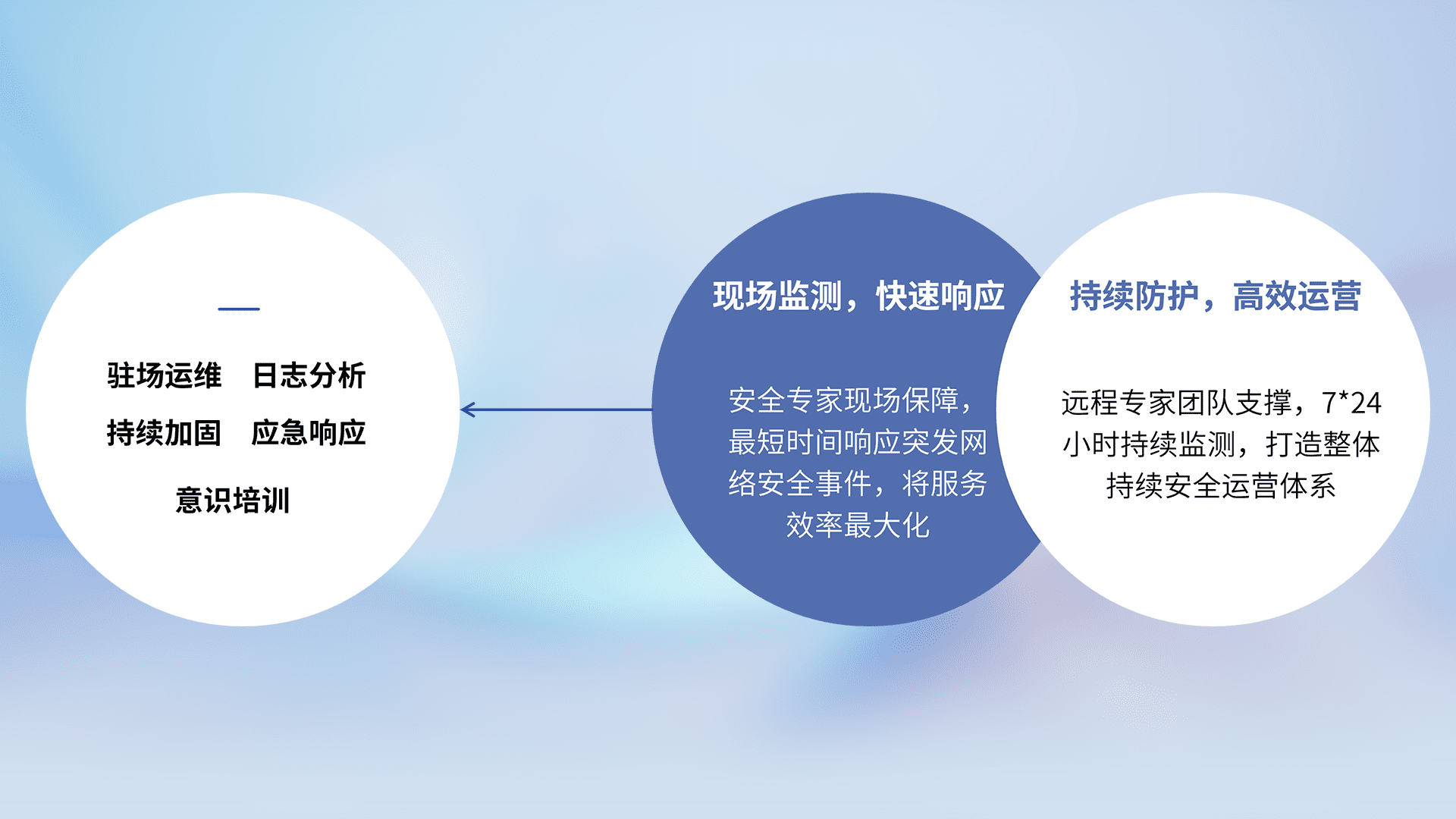 针对客户行业特性,,提供专属的一站式安全管理服务,,,,帮助客户全面感知网络空间威胁,,,通过安全专家的线上、、、线下防护支持,,实现风险闭环,,将安全保障常态化,,,为客户打造常态化安全运维运营服务。。。