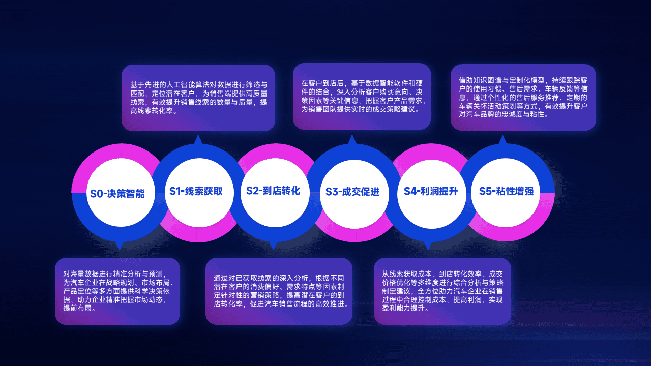 通过拓宽潜在客户来源、、、优化线索分配并提高到店转化率,,以增强销售效率。。。。同时,,,利用线索数据不断优化分析模型,,,,有效提升转化率,,,扩大营销影响力。。。。